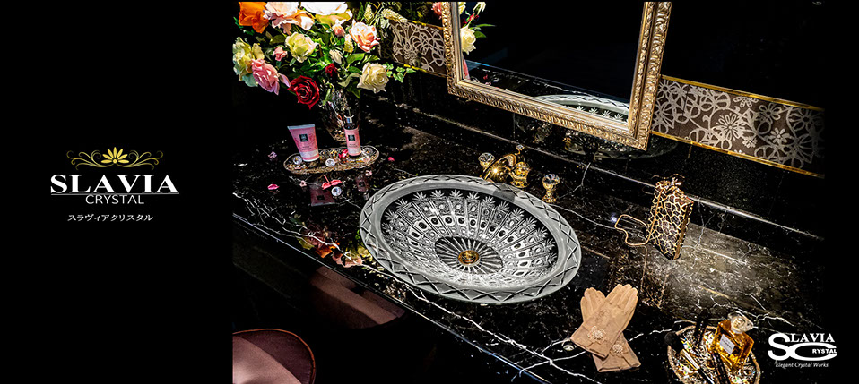 悠久の歴史を越え今なおクリスタル芸術の最高峰といわれる「BOHEMIA」(ボヘミア)伝統のガラス工芸。スラヴィアクリスタル ブランドは、100%ハンドメイドによる熟練職人達によって製作された世界で初めてとなるクリスタル洗面ボウル(洗面器・手洗器)です。